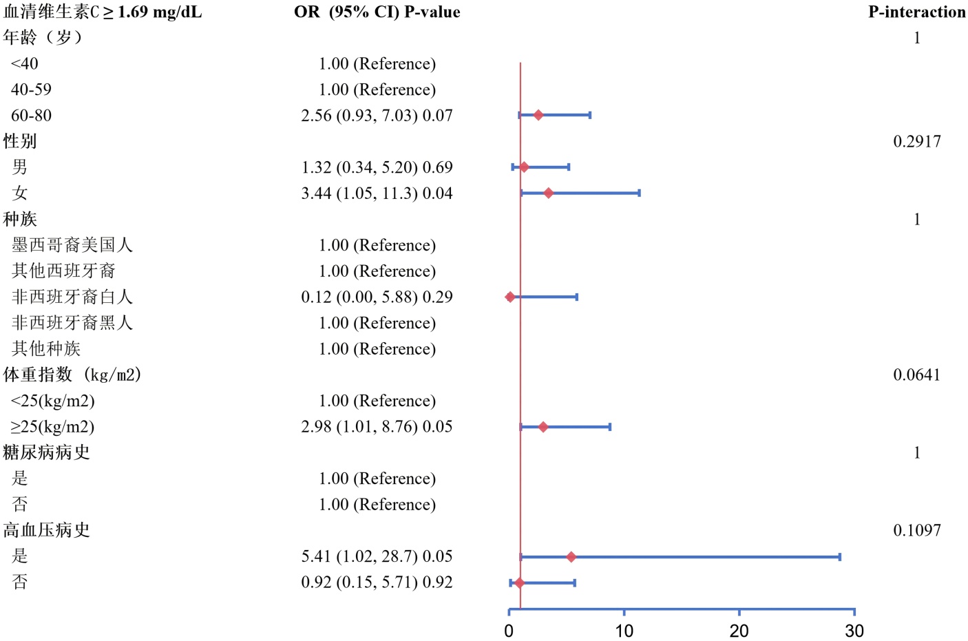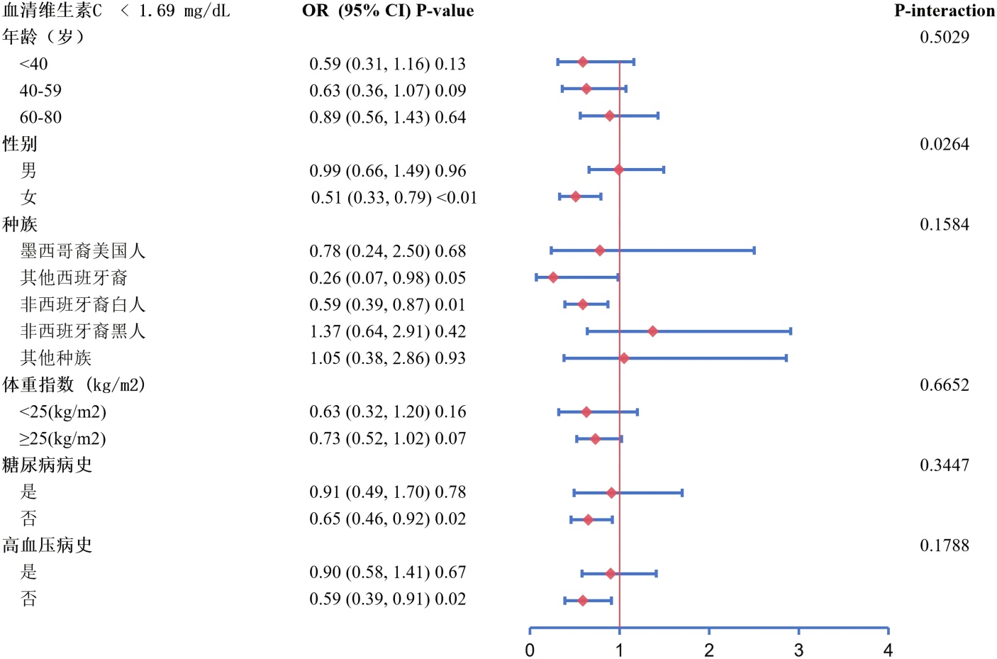 图4. 分层分析森林图(血清维生素C ≥ 1.69 mg/dL)