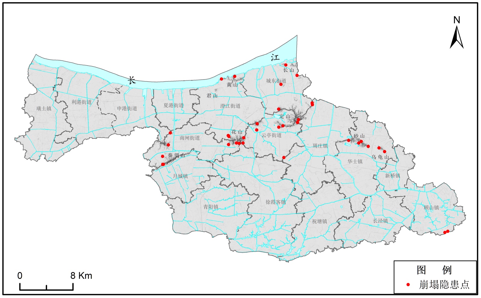 江阴市地处长江三角洲太湖平原北端,北枕长江,是大江南北的重要交通枢纽和江海联运的天然良港。地貌类型以冲湖积平原为主,北部分布有多处孤山残丘。受地质条件复杂、降水时空分布不均等自然条件的影响,加上人类活动带来的破坏作用,区内存在较多的崩塌、滑坡灾害及隐患。区内经济发达,人口密度大,同样规模等级的地质灾害造成的损失和影响普遍大于其它地区[1]。