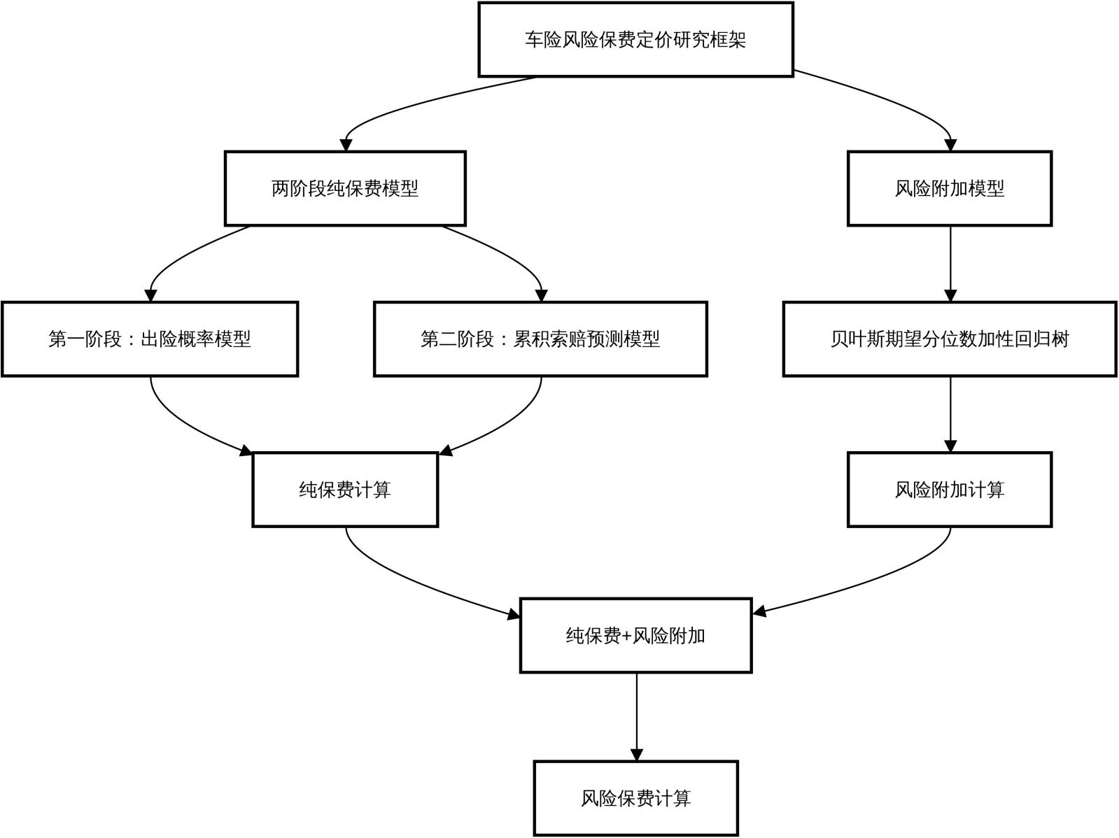 本文围绕车险风险保费定价中的关键建模问题,构建并验证了一套分阶段的建模框架,重点关注风险识别能力与尾部风险刻画效果。在出险概率、累计索赔额及风险附加三个核心环节中,分别引入并比较多种统计与机器学习模型,系统评估其在不均衡数据、非线性关系及厚尾分布情形下的预测表现。实证结果表明,基于贝叶斯期望分位数加性回归树的风险附加模型在尾部风险识别方面具有明显优势,能够更有效地刻画高风险保单的损失特征。