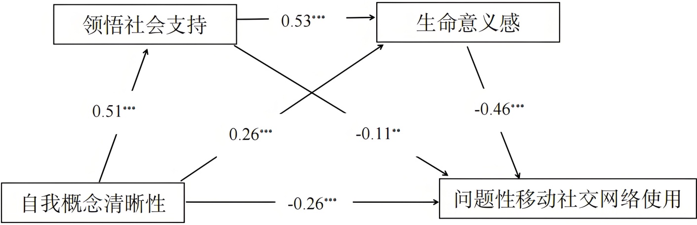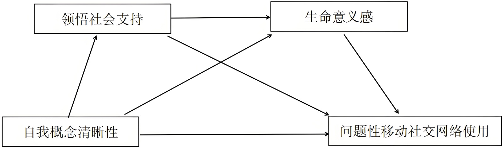 李放, 王琴瑶, 钟林鹏, 郑雪, 武碧云(2019). 大学生自我概念清晰性与智能手机成瘾的关系: 自尊与社交焦虑的中介作用. 中国临床心理学杂志, 27(5), 900-904.