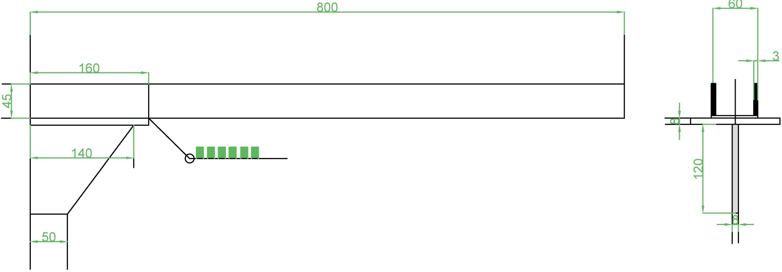 车轮滑槽承载共享电单车总重量,如图5所示。主要由车轮滑槽和牛腿支架构成,起到支撑作用。车轮滑槽里有定位系统,使用时首先定位销打开,车辆进入,直到达到适当位置,锁定定位销,存车动作完成。