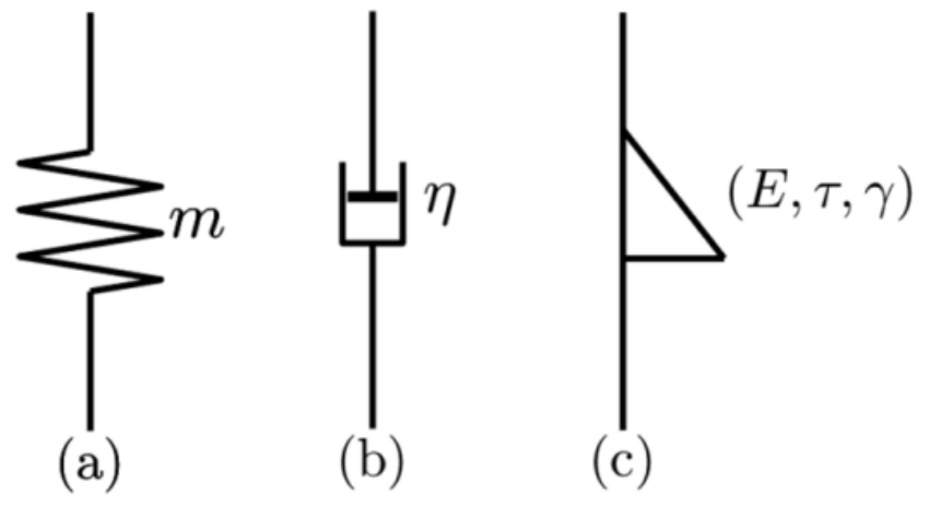 图1. 力学元件(a) 弹簧,(b) 阻尼器,(c) 分数元件