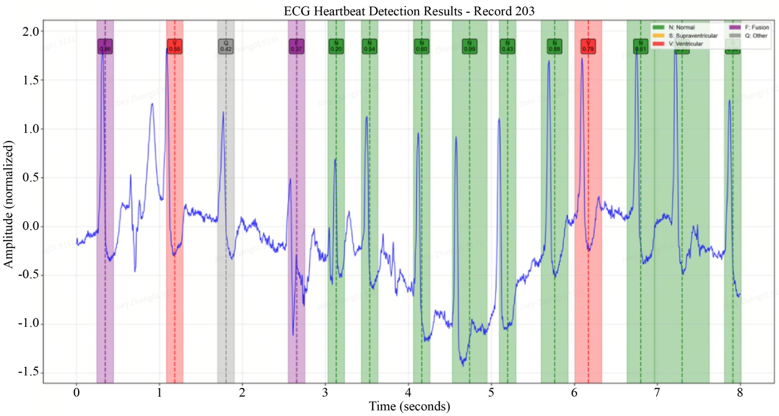 图3. 心律失常分类检查结果可视化