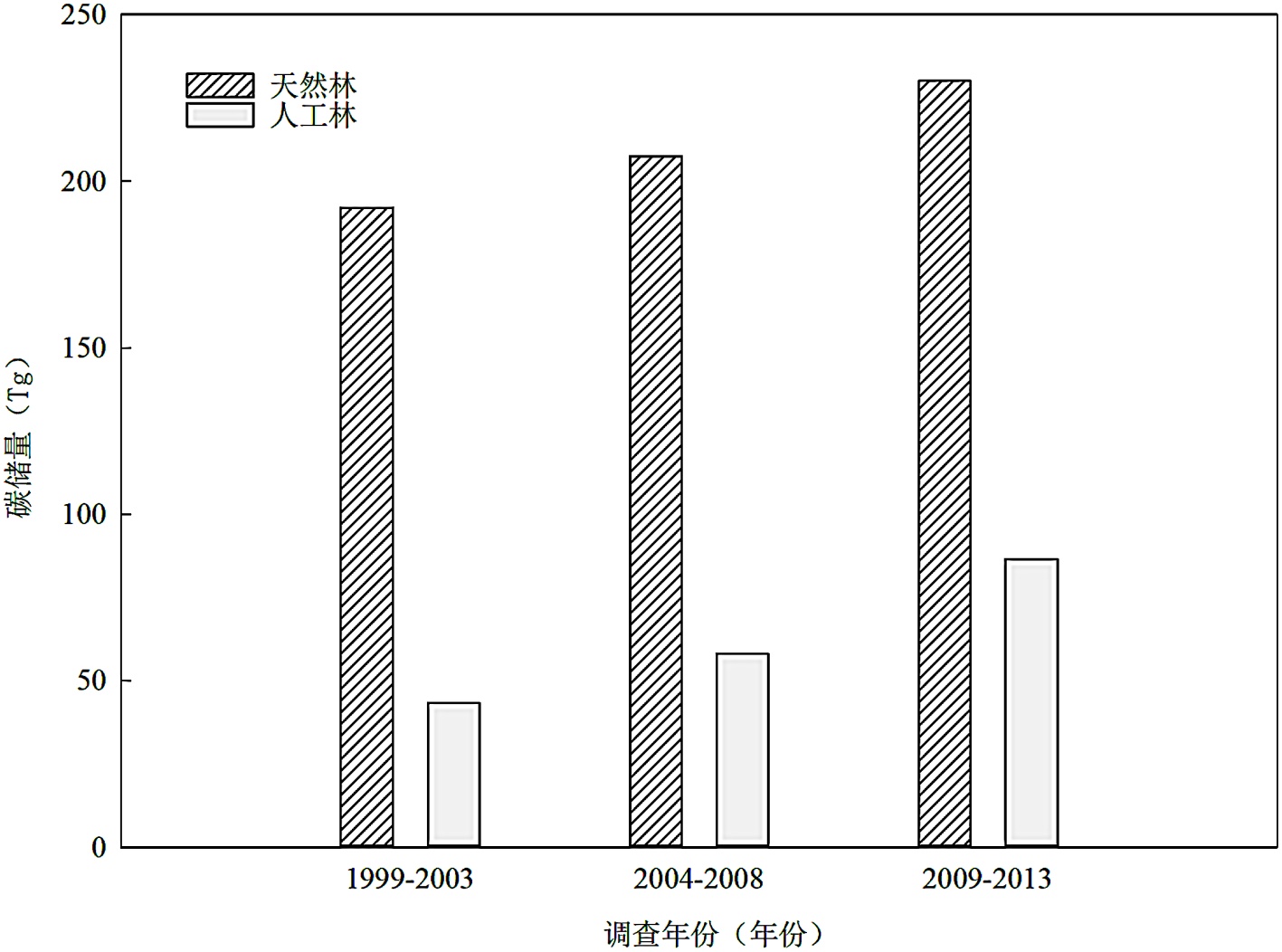 3) 黄河流域森林植被碳储量主要集中在天然林,人工林碳储量增加幅度大于天然林。