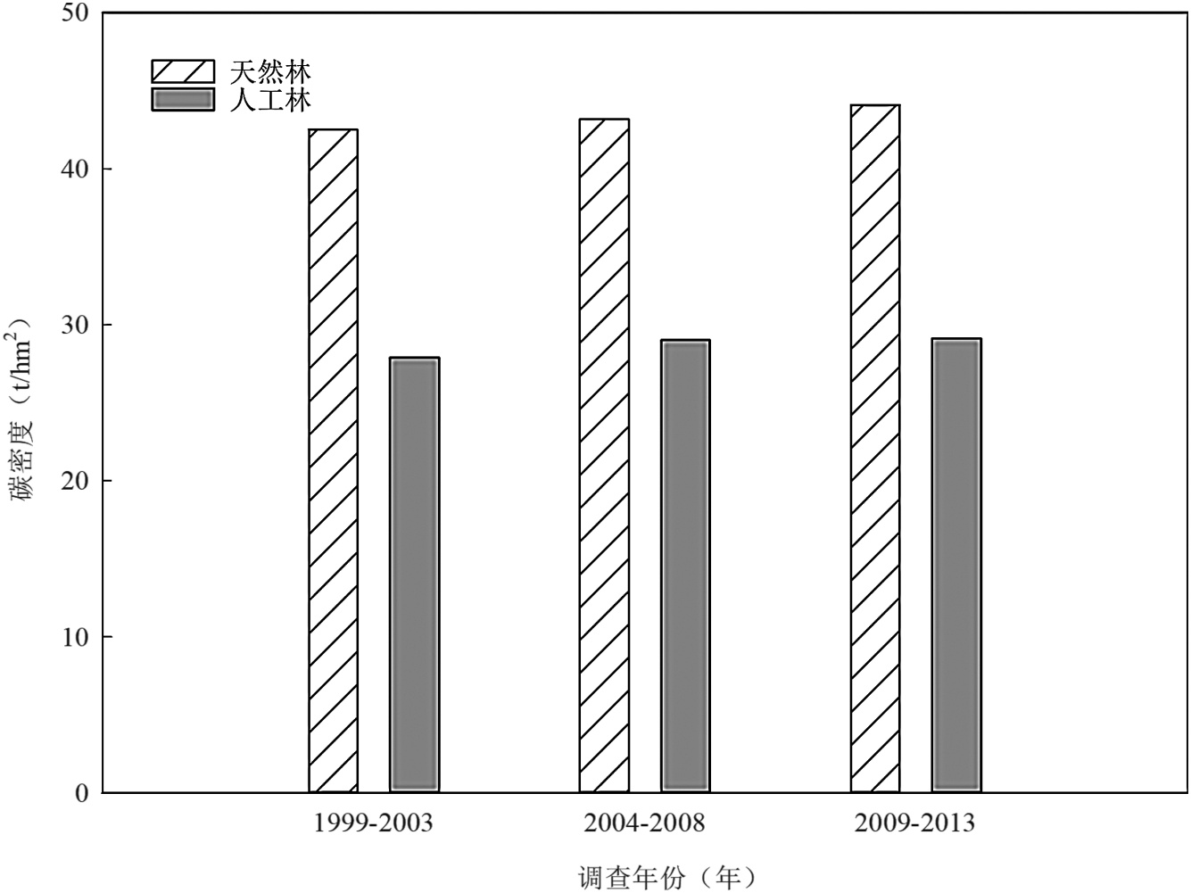 其它3次森林资源清查数据的不同龄级、起源和不同河段森林的碳密度、碳储量计算方法与此一致。