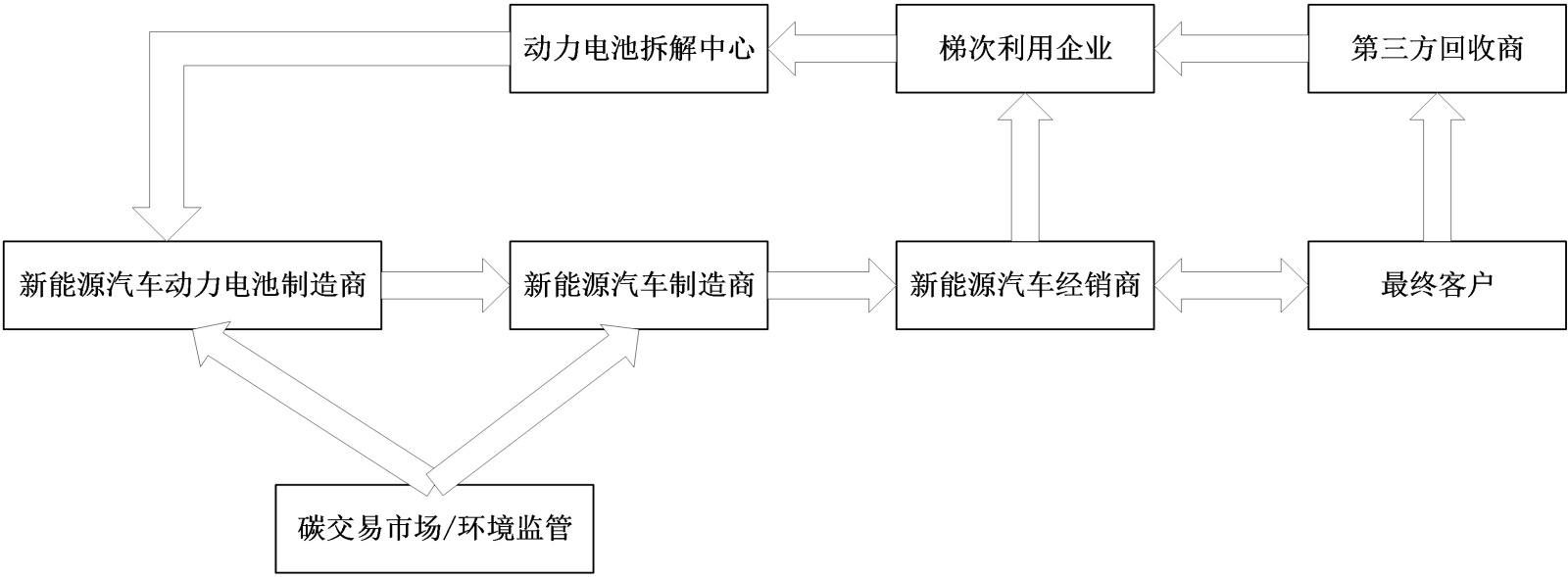 通过以上国内外学者的研究,我们发现现有关于新能源汽车动力电池研究大多集中于动力电池的回收模式与定价决策方面,很少有用系统动力学从动态演化视角来研究企业间协同合作程度对新能源汽车动力电池回收再利用的影响,尤其是在双碳政策背景下,探究动力电池回收与利用的碳排放与碳交易成本情况。因此,本文以新能源汽车动力电池闭环供应链为研究对象,构建系统动力学仿真模型,旨在深度解构国内外技术合作及上下游纵向协同对系统运行绩效的作用机理,为优化回收生态提供决策参考。