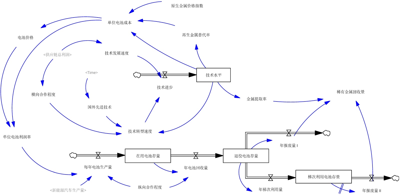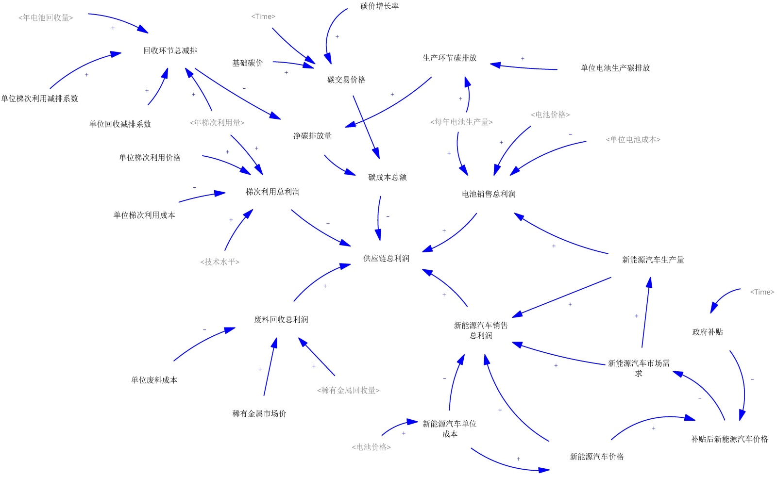 本研究利用系统动力学方法,以新能源汽车动力电池闭环供应链为研究对象,引入碳排放约束模块,对供应链中上下游以及国内外合作关系进行了研究,得出如下结论: