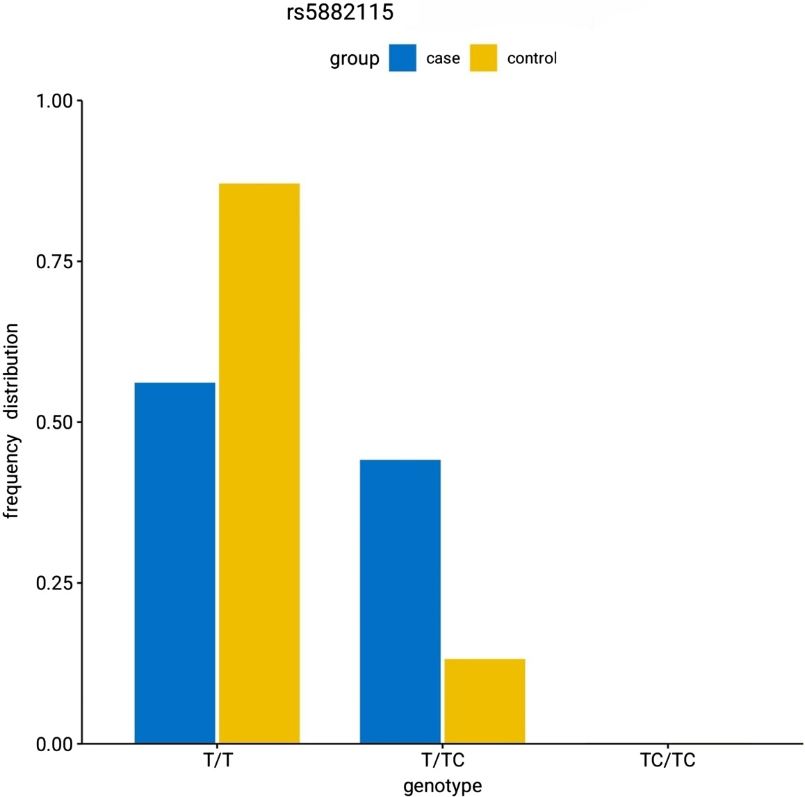 Figure 1. Genotype distribution of rs5882115 in the case group and the control group