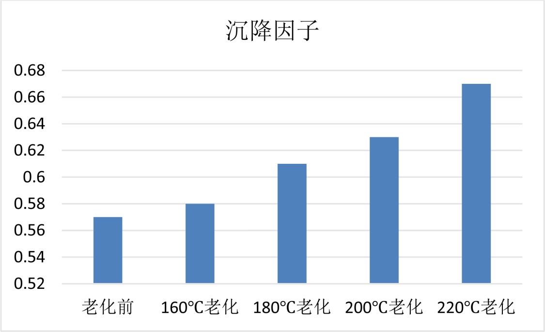 2) 高温会使聚磺水基钻井液中的聚合物分子链易发生卷曲、降解,削弱其在粘土颗粒表面的吸附与空间位阻作用;同时高温会加剧颗粒热运动并压缩双电层,削弱静电排斥,导致颗粒更易聚结变大;此外,体系粘度切力下降,悬浮能力降低,共同致使沉降因子增大,稳定性变差。