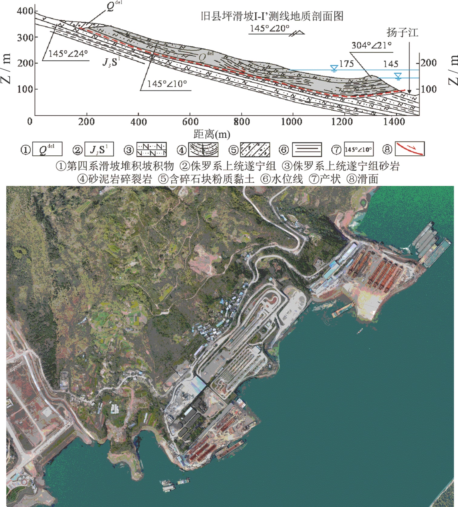 图7. 旧县坪滑坡场地与剖面图