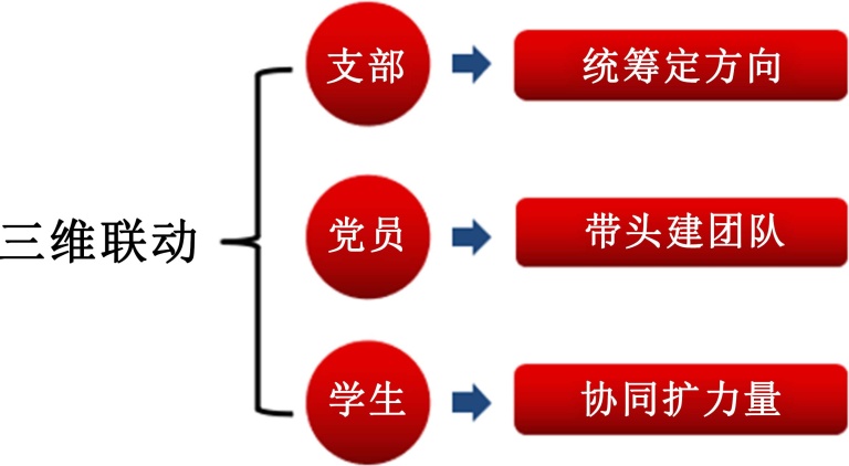 科普工作的质量,关键在于科普队伍的专业素养。惠州学院物理党支部高度重视科普队伍建设,组建了一支以党员教师为核心、优秀学生志愿者为补充的专业化科普队伍,为科普活动的有序开展提供保障。科普团队组织架构遵循“支部统筹–党员带头–师生协同”的三维联动机制(如图7所示),确保科普活动有计划、有落实、有保障。