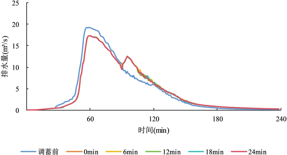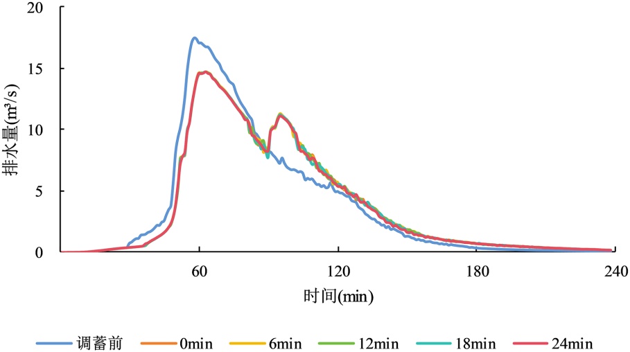 图8. 20a一遇调蓄池不同起调时间下排水口排水量