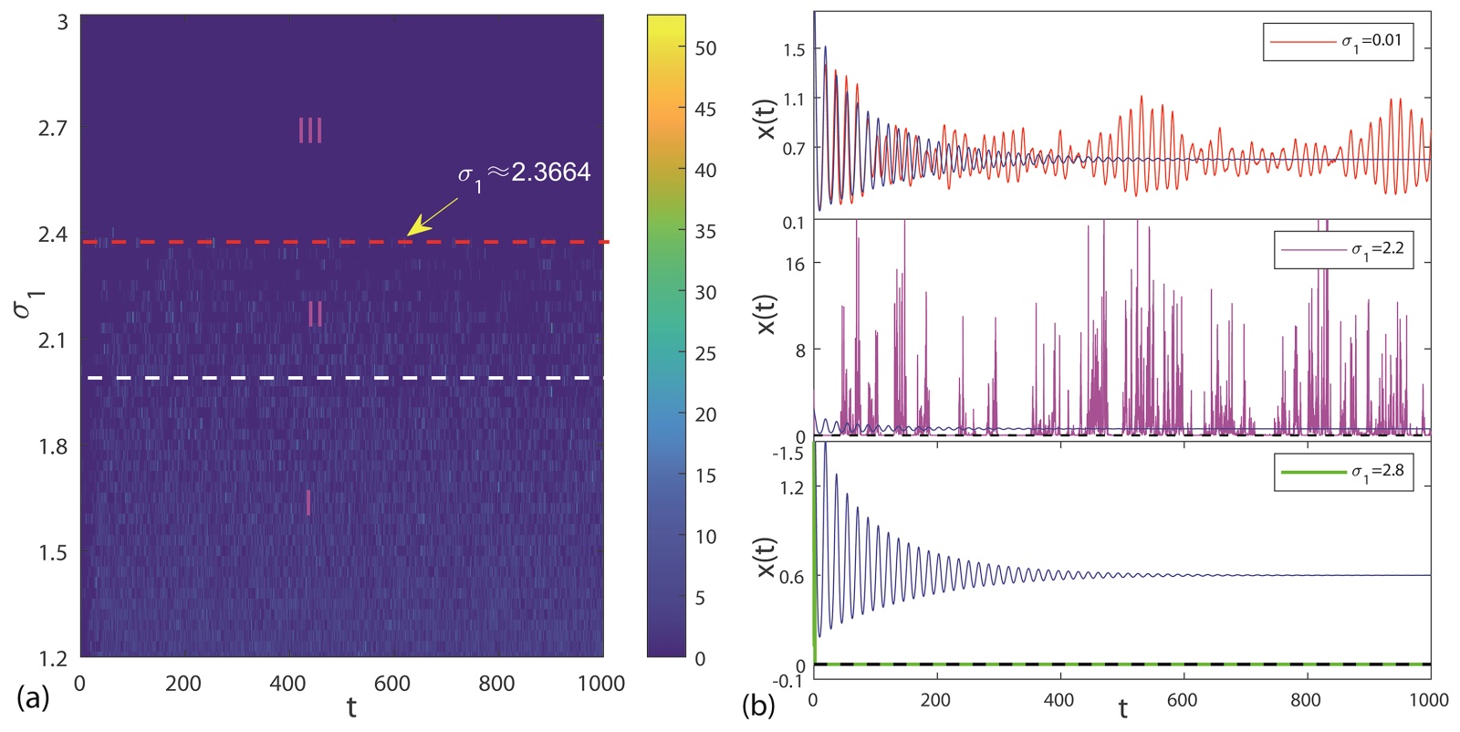 图5. (a),(b):白噪声强度为