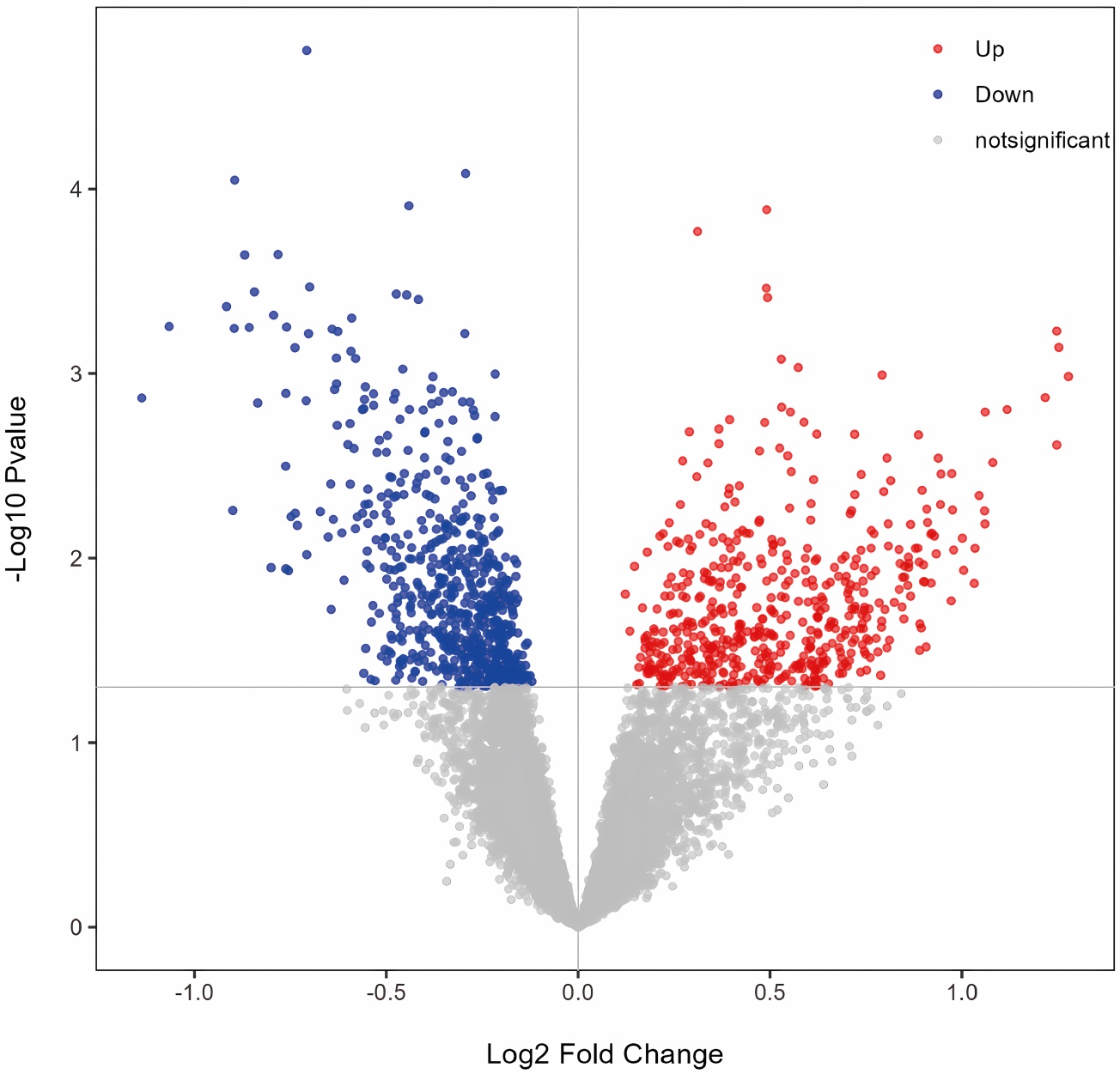 注:火山图展示了1179个差异表达基因(520个上调基因和659个下调基因),其中红色表示上调基因,蓝色表示下调基因,灰色表示无显著变化的基因。