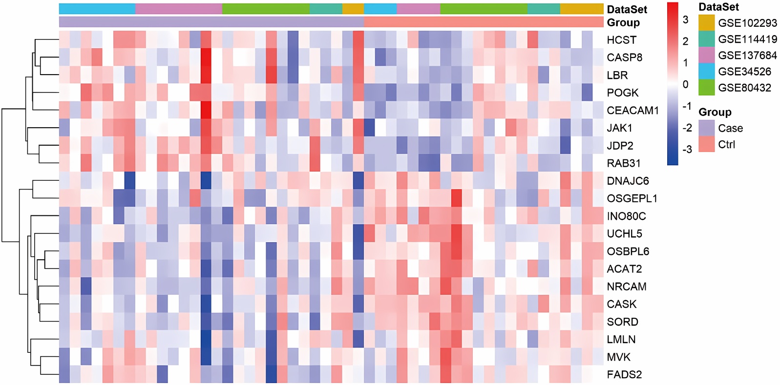 注:热图展示了前20个差异表达基因。