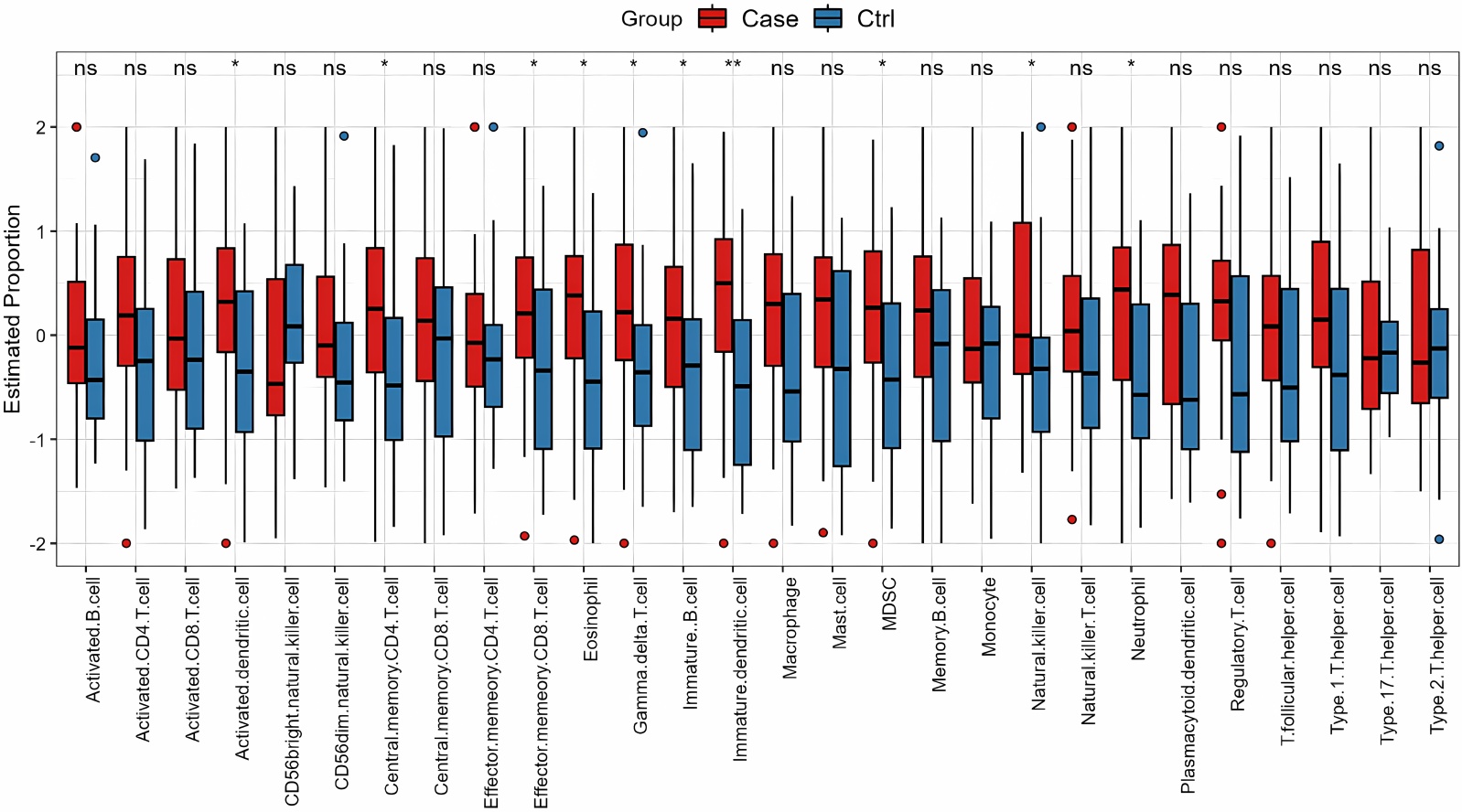 注:热图和箱形图展示了PCOS患者与对照组中的免疫细胞分布。