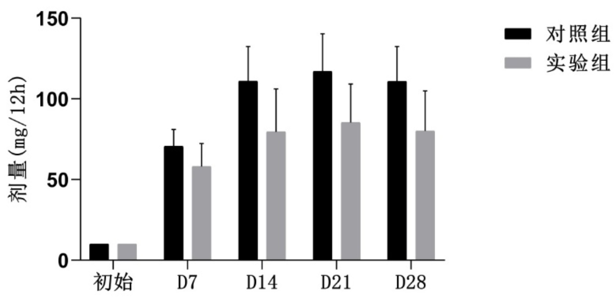 表4. 两组不同时间点用药剂量比较(mg/12h)