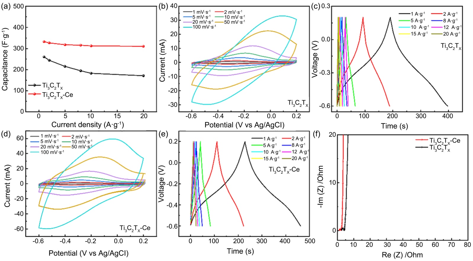 Ren, F., Lu, Z., Liu, X., Wang, T., Huang, X., Dou, J., et al. (2024) Lewis Acid-Etched MXene Self-Assembled with Reduced Graphene Oxide for Symmetrical Supercapacitors with Liquid/Solid Electrolytes. Journal of Alloys and Compounds, 978, Article ID: 173480. [Google Scholar] [CrossRef]