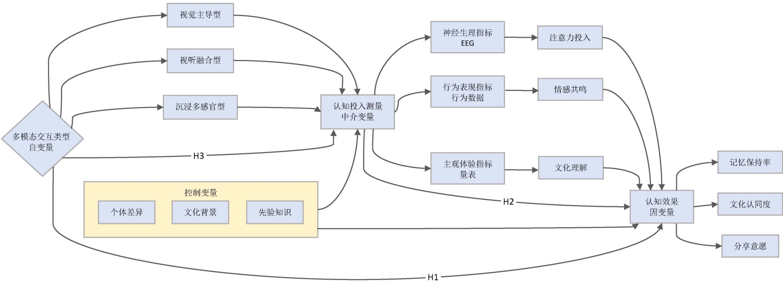 H3:个体文化背景调节多模态交互对认知投入的影响。