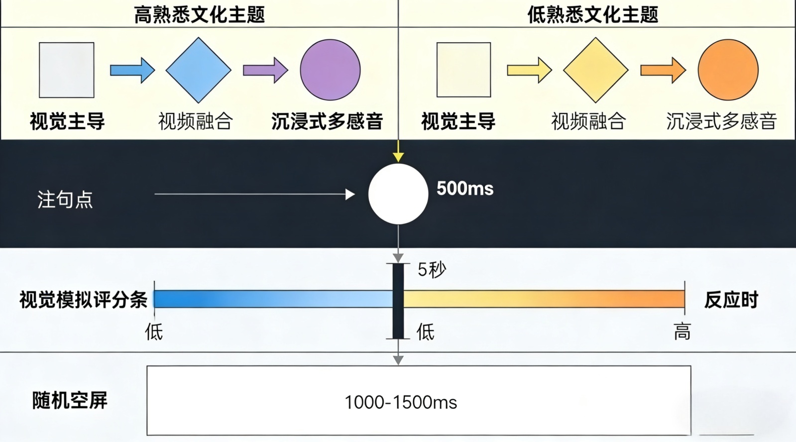 H3 (神经调节效应):个体文化背景调节交互类型对神经指标的影响。高文化匹配者对归化内容(如视听融合)可能表现出更强的积极情绪与自我参照神经活动(如LPP增强);低文化匹配者对异化内容(如沉浸式体验)可能引发更强的认知冲突与新异性加工信号(如N400增强) [9]。
