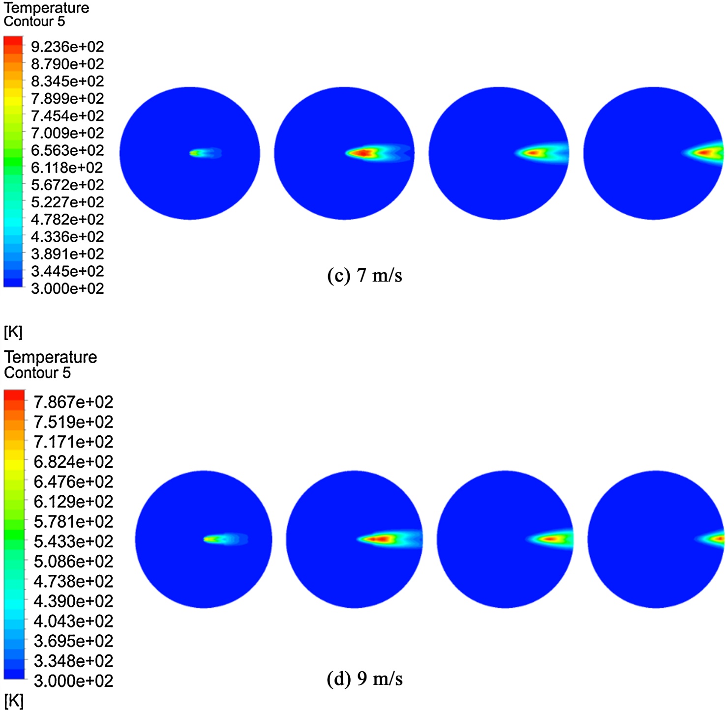 图7. 纵向温度场分布(7 m/s)