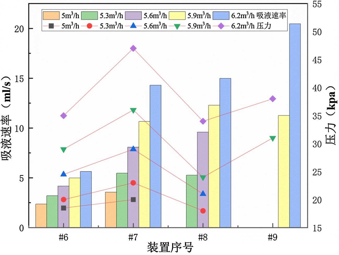 图2. 不同流量下装置吸液速率以及入口压力