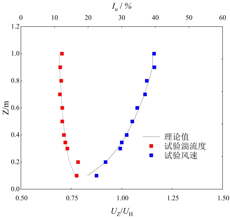 试验于湖南科技大学风工程试验研究中心吸入式直流风洞中进行,试验段截面高3 m,宽4 m,长21 m,试验风速可调范围为0~30 m/s。