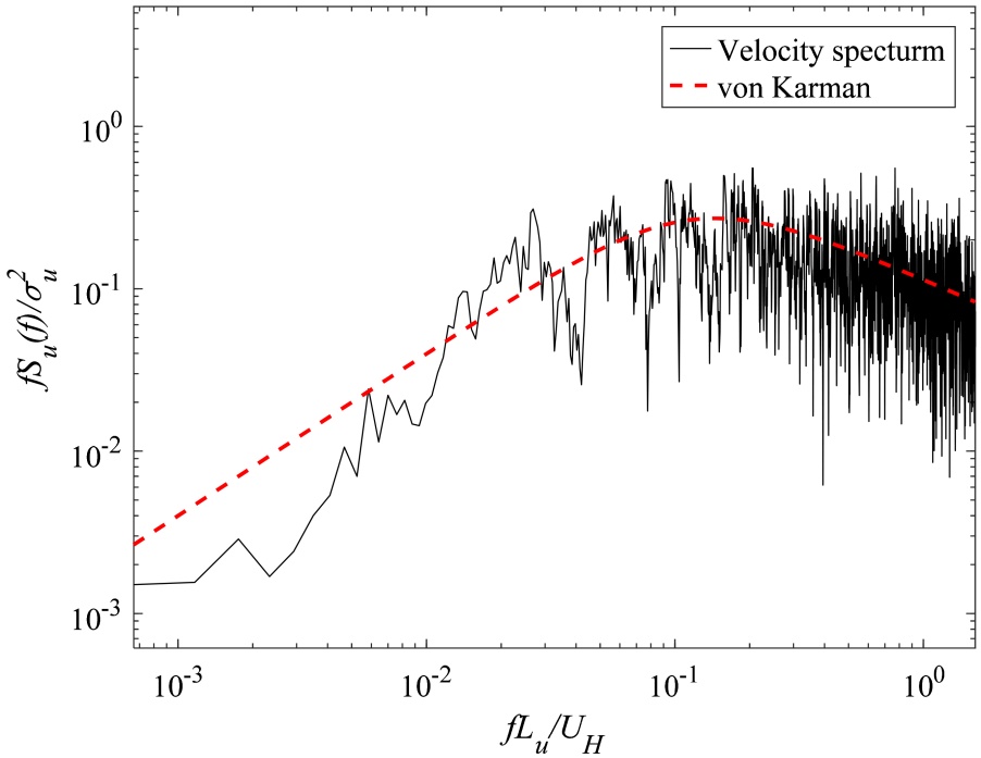 (a) B类风场模拟 (b) 脉动风功率谱