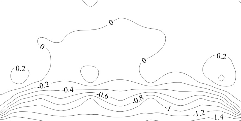 图6. 0˚风向角下平均净风压系数分布