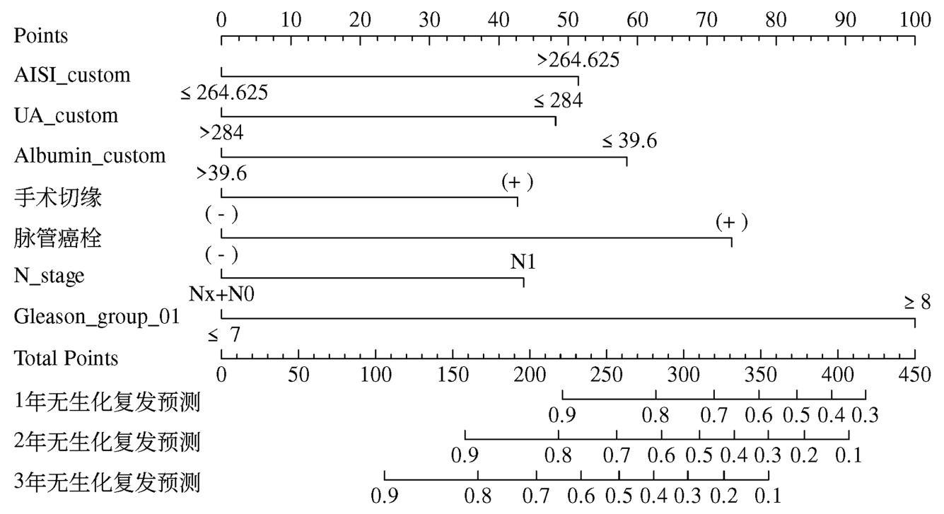 本研究充分分析了前列腺癌根治术后生化复发的危险因素,发现AISI在生化复发中的预测价值,并整合传统病理特征构建列线图,有助于辅助临床决策。但本研究也存在一定局限性,本研究是一项单中心回顾性分析,无法避免选择偏倚。此外,模型预测效能的长期稳定性及在更广泛人群中的可靠性,尚需通过多中心、前瞻性队列研究进行外部验证。