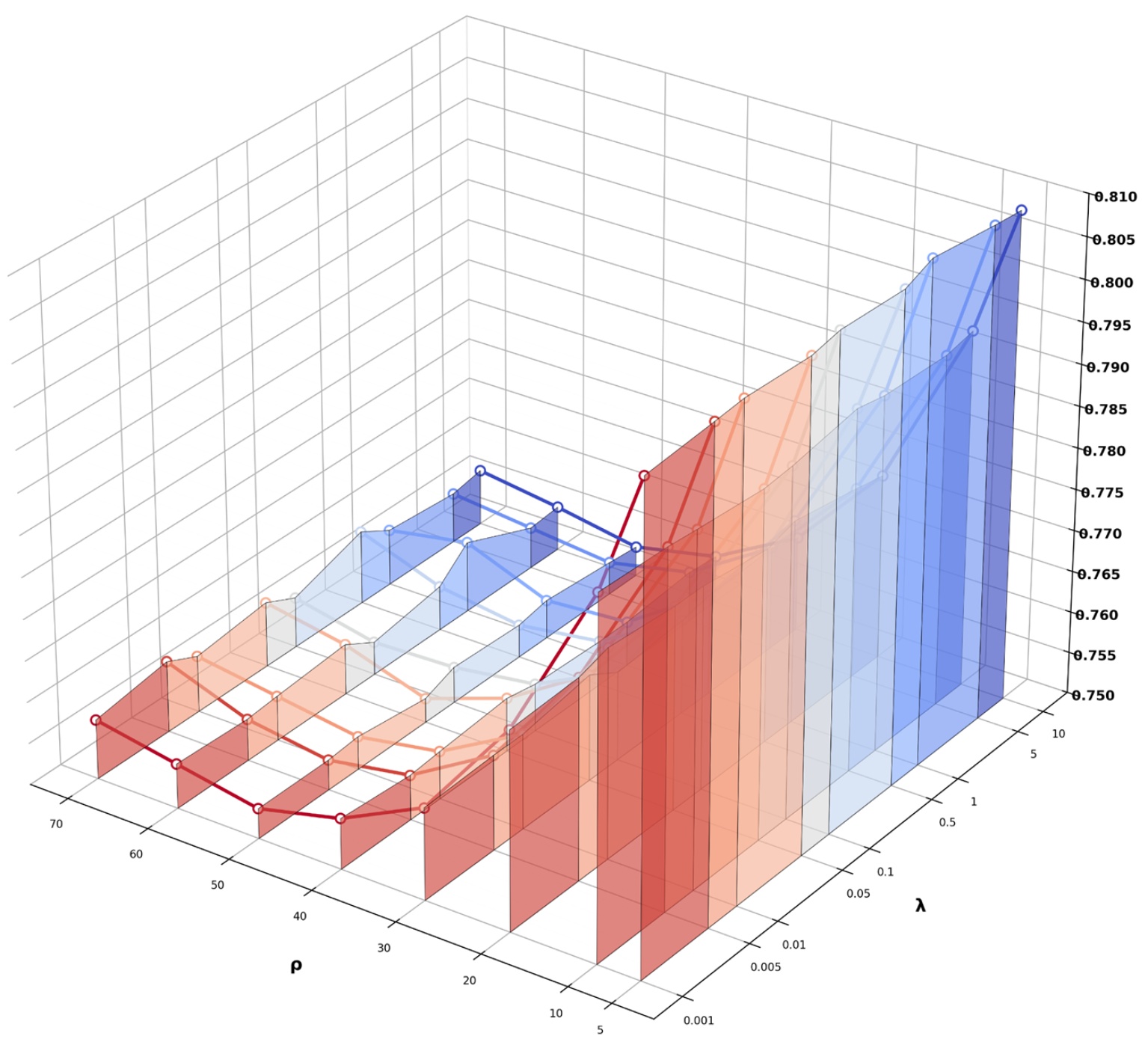 参数对,记录模型在相应配置下的准确率,并将所有结果进行可视化,以便直观比较不同参数设置对性能的影响趋势。当参数