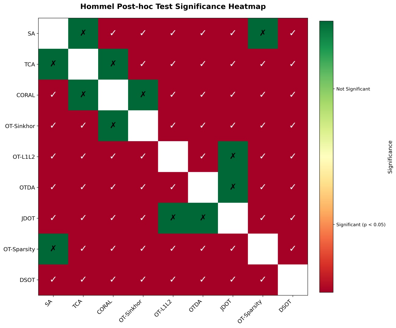 ),验证了本文模型在处理跨域任务性能上显著优于现有方法,且此优势具有统计可靠性。
