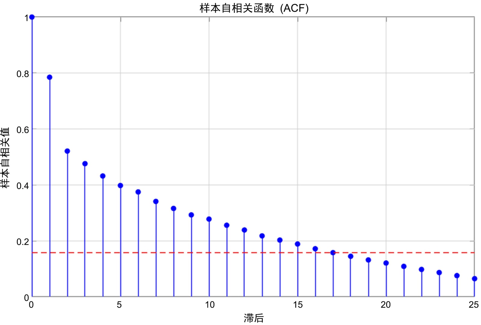 图3. 数据序列平方和的自相关函数