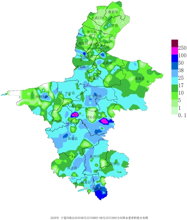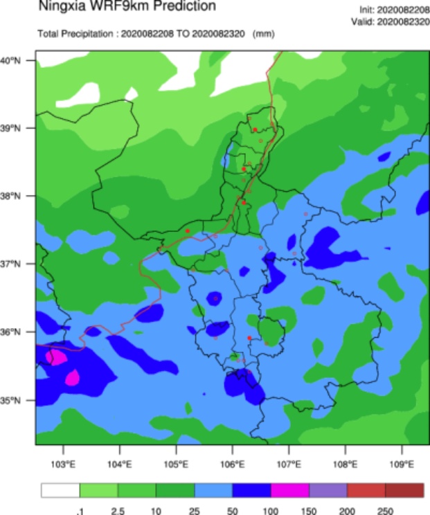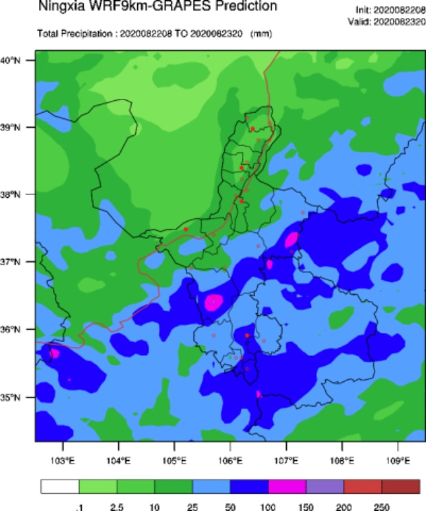 降水检验评估办法采取宁夏中尺度WRF模式系统的检验评估办法,对2020年五到八月08时及20时起报的12小时及24小时降水量进行检验评估。