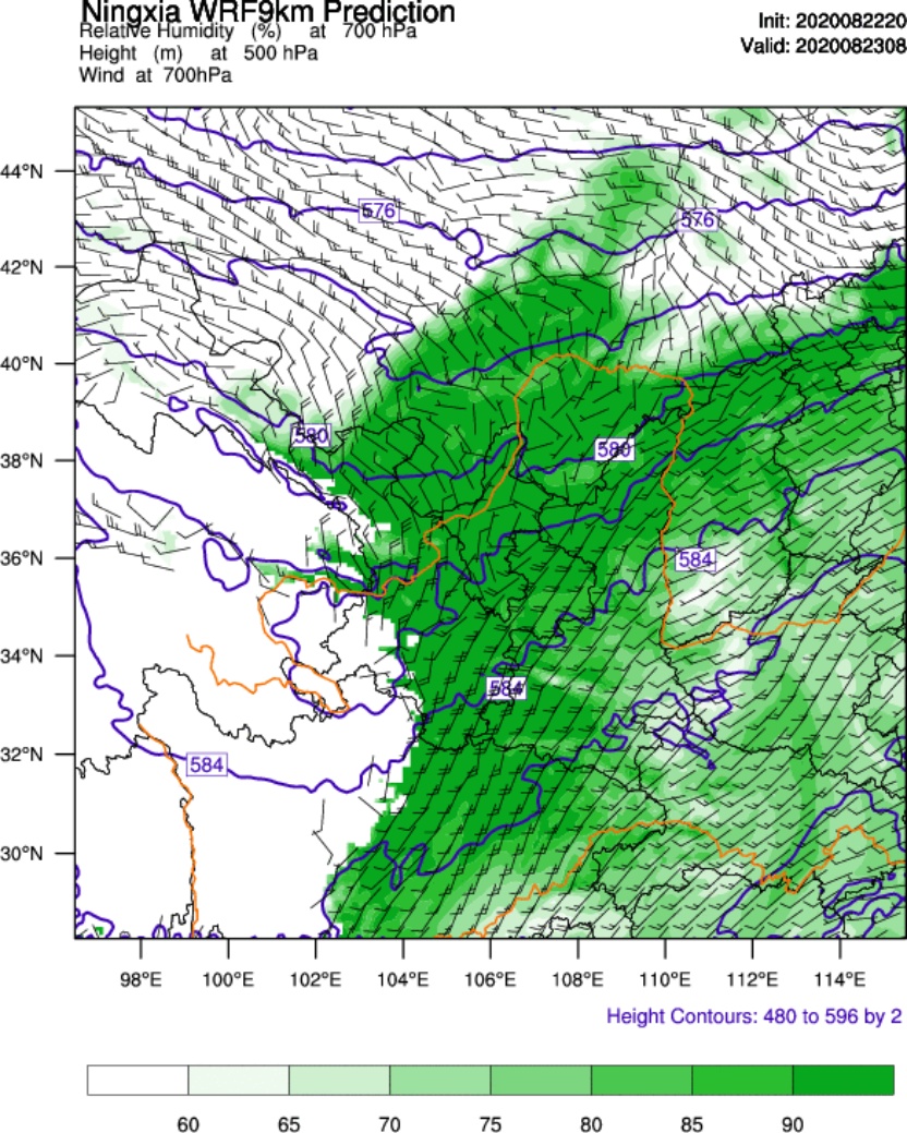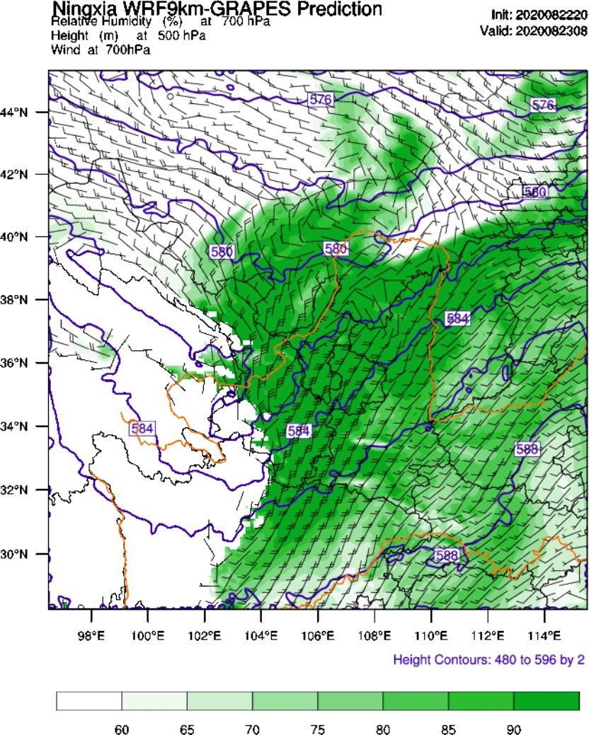 暴雨是我国灾害性天气之一,暴雨的预报一直是国内外的研究热点与难点[1]。国家对暴雨科研和预报极为重视,组织了多方力量进行了暴雨的科研协作,研究重点由天气尺度转向了中尺度,还研制了全国性的区域降水数值预报模式。多年来我国诸多气象工作者一直致力于利用高分辨率中尺度WRF (Weather Research and Forecasting Model)模式对宁夏暴雨的研究,以提高本地区的预报准确率[2]。WRF是由美国环境预测中心NCEP (National Centers for Environmental Prediction)、美国国家大气研究中心NCAR (National Center for Atmospheric Research)等科研机构和大学合作开发的新一代中尺度天气预报模式。WRF模式的准确性主要取决于模式物理过程的完善程度以及模式初始场的准确程度[3] [4]。目前宁夏WRF模式预报的物理过程发展已经逐渐完善,所以高分辨率初始场的选取是目前业务工作上所需要的。目前宁夏WRF模式进行数值模拟的天气预报所使用的背景场NCEP/GFS (Global Forecasting System)全球数值预报模式资料,取得了较理想的预报效果,得到当地预报员和专家的认可,成为宁夏暴雨等降水天气预报的重要参考之一。随着国内GRAPES (Global/Regional Assimilation and Prediction System,现更名为CMA)全球数值预报模式的快速发展,其预报性能逐步接近NCEP等国外数值预报模式[5]-[8],为驱动本地中尺度数值预报模式打下了良好的基础。随着国际环境的日趋严峻,美国NCEP等全球数值预报模式资料能够正常获取成为未知数,中国气象局预报与网络司专门就NCEP数据资料全部缺失对预报业务产生的影响进行评估分析,要求各省气象局提出可替代的应急措施。为此,宁夏专门开发了将GRAPES全球数值模式数据转化为WRF模式所需背景场数据的接口程序,驱动本地WRF模式的备份系统运行,一旦NCEP数据无法获取,将立即将GRAPES驱动的WRF-RUC (Rapid Update Cycle)作为业务运行的主系统,替代原系统实时提供数值预报产品,确保宁夏预报预警业务不受影响。但用GRAPES替代NCEP驱动本地WRF模式的预报效果有何影响还未做评估。因此,本项目将针对宁夏地区的暴雨,开展NCEP和GRAPES作为WRF背景场的敏感性试验与检验评估对比分析[9] [10],为今后暴雨等降水过程高分辨率数值预报中合理选择和使用背景场提供一些参考[6]。