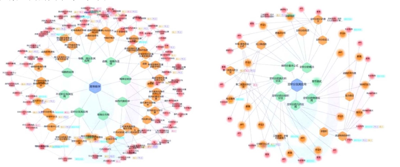 图1. 左:高等数学的知识图谱;右:定积分及其应用的知识图谱