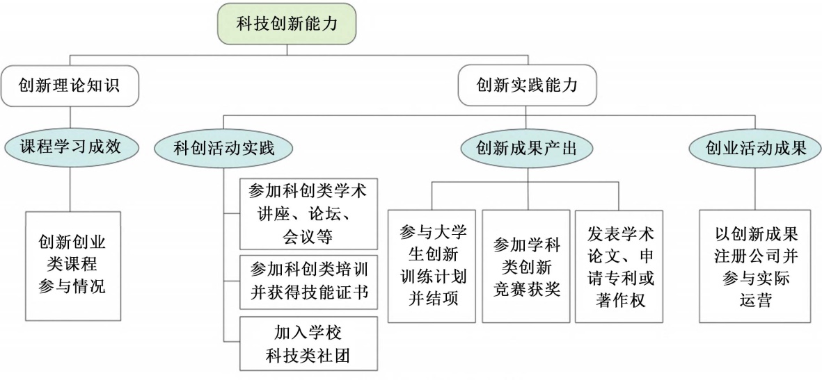 2) 创新实践能力:分为三个子维度: