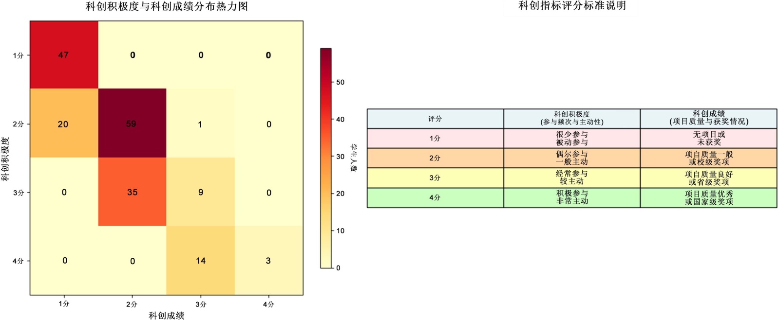 图3. 科创积极度与科创成绩分布热力图及科创指标评分标准