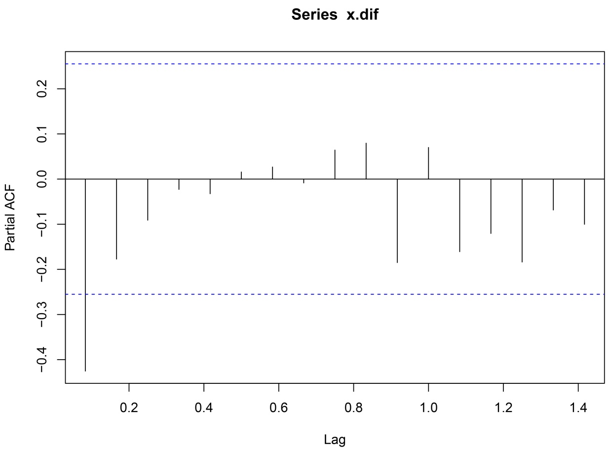 Figure 3. Partial autocorrelation plot of cargo throughput at ports nationwide