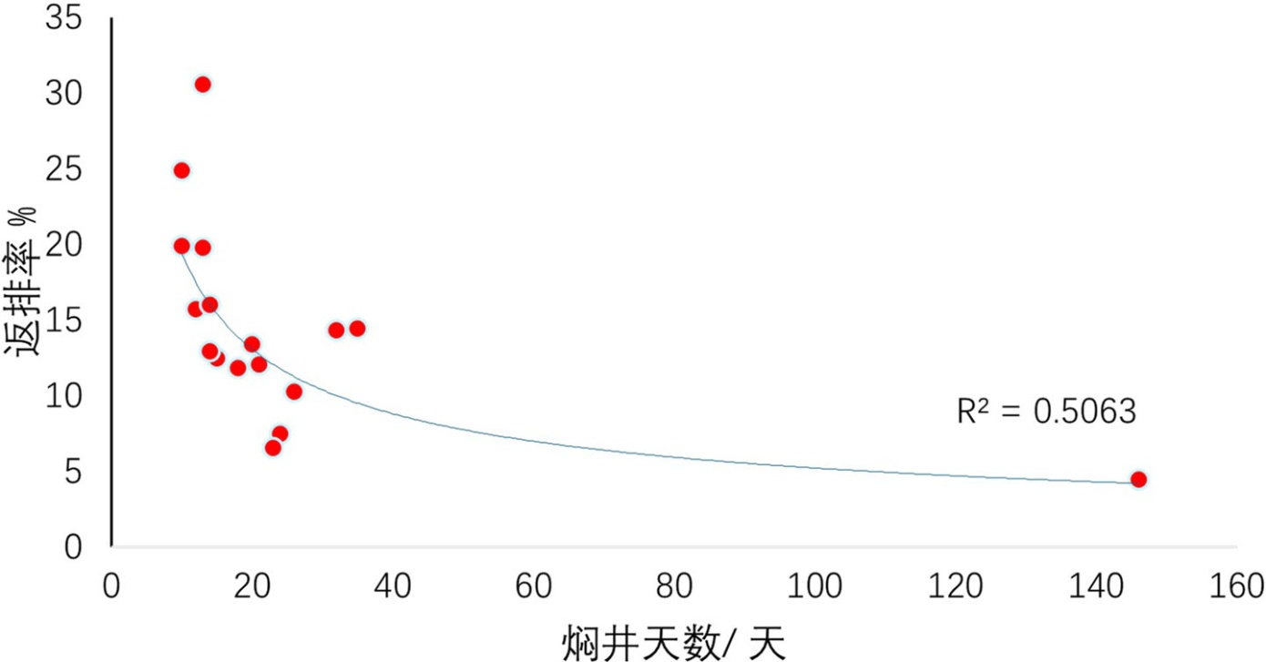 Figure 2. Correlation between soaking time and gas flowback rate of shale gas wells