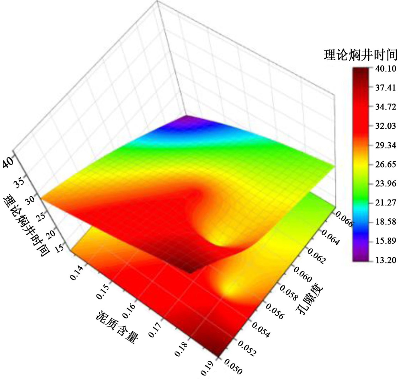 图6. 孔隙度–泥质含量–焖井时间三维关系图