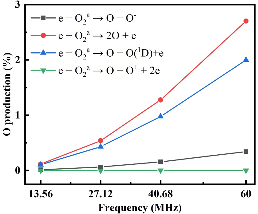 离子空间分布的调控机制:提升频率可同步增强各活性粒子的密度,O原子可以通过电子与