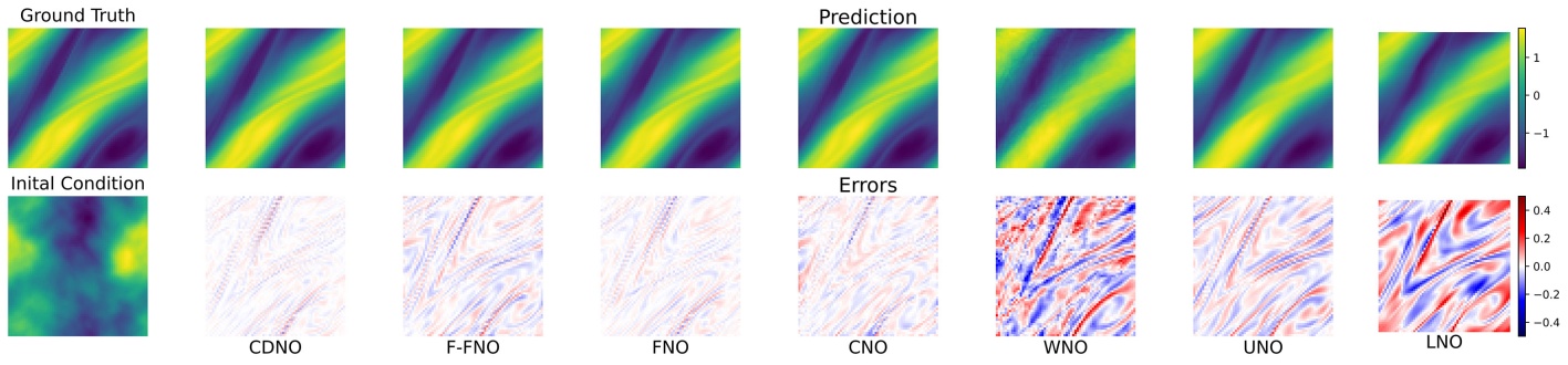 更重要的是,系统的分布式分析揭示并证实了一个普遍存在的高频崩溃现象:包括CDNO在内的所有先进算子,在面对物理敏感的高频模态时,其泛化性能都会出现灾难性下降。这一发现表明,该领域的根本挑战现已超越了单纯的架构优化,触及了纯数据驱动范式在捕捉偏微分方程底层物理机制方面的固有局限。