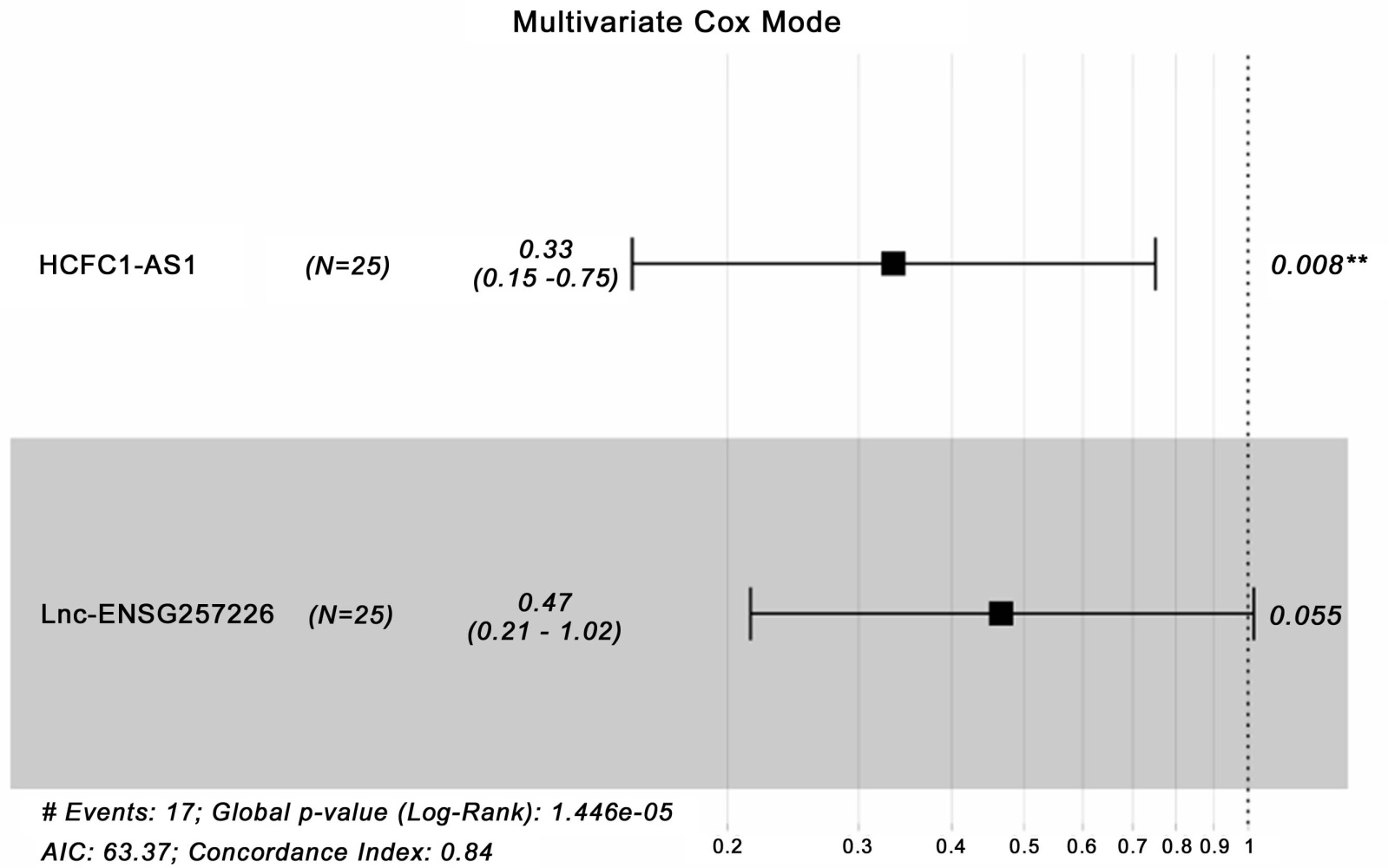 图2. 多因素Cox模型的森林图及核心统计量