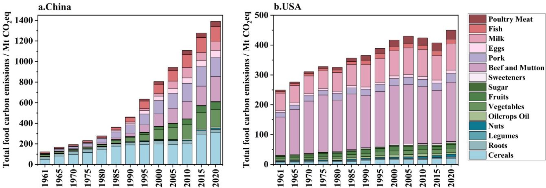 Figure 5. Changes in total greenhouse gas emissions from food in China and the United States