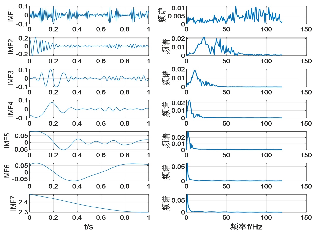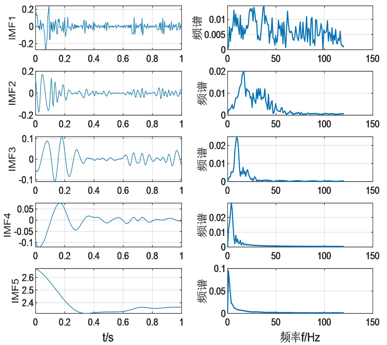 图1. EMD分解的信号及其频谱