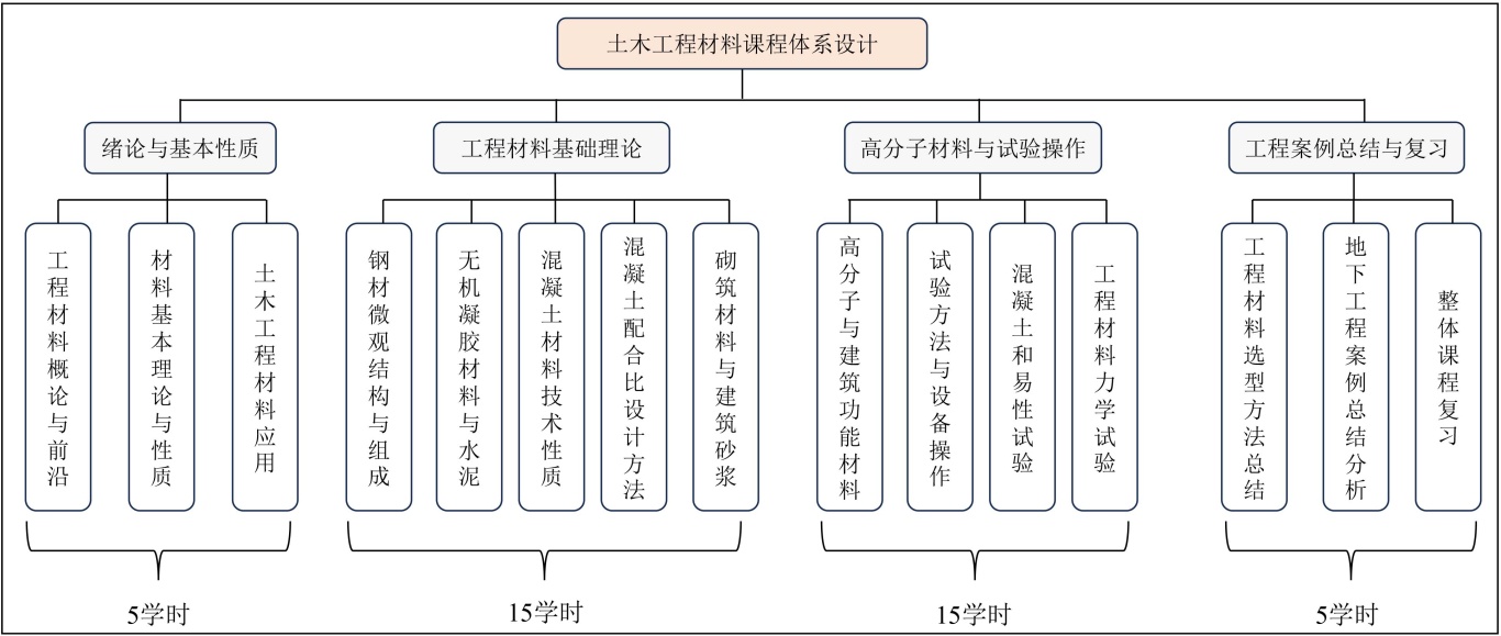 图1. 《土木工程材料》课程体系及课时分配