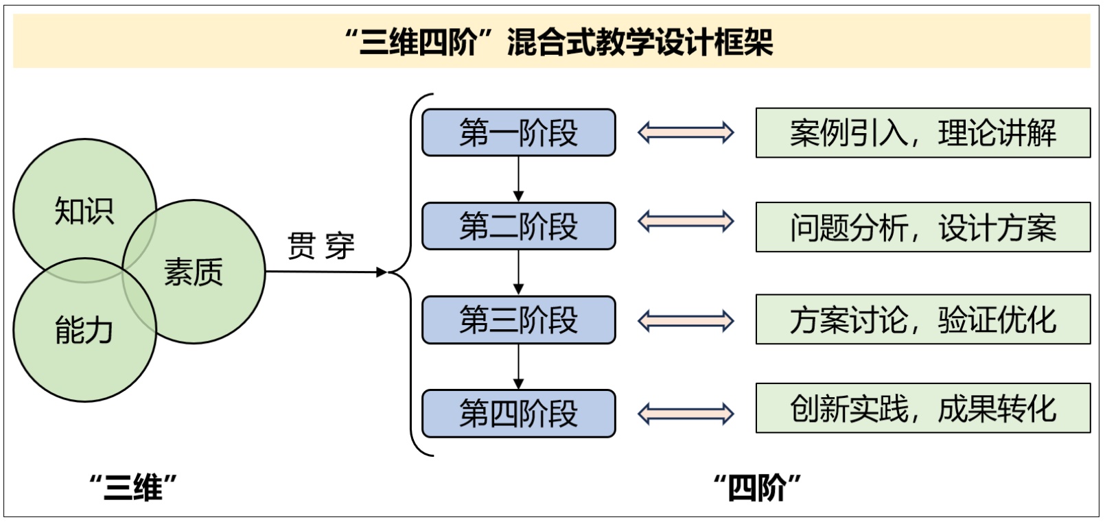 图2. “三维四阶”混合式教学设计框架
