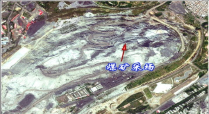 矿业开采活动占地类型包括采场、中转场地、固体废弃物(煤矸石堆、废石堆、排土场)、尾矿库等,并建立解译标志见表1。