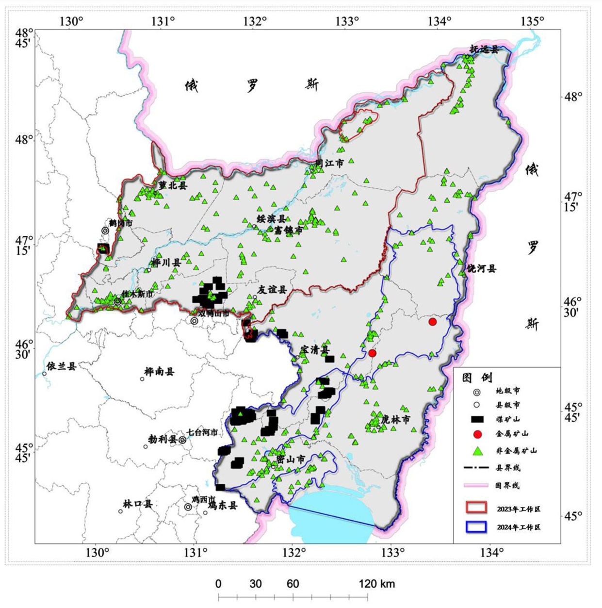 图3. 三江平原矿山分布